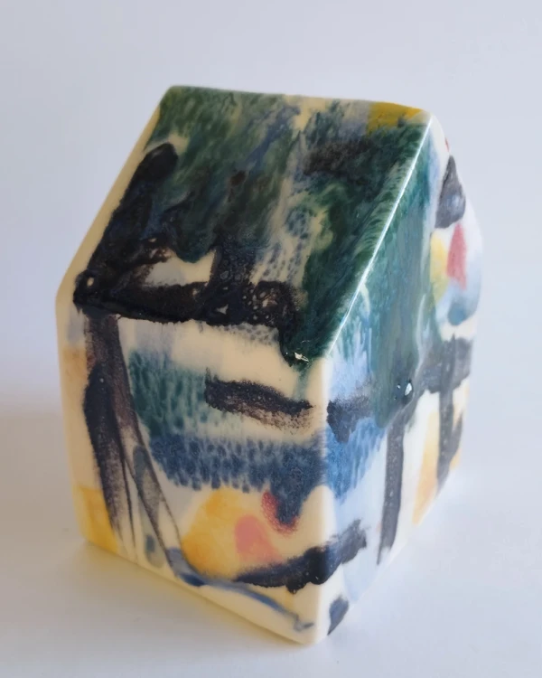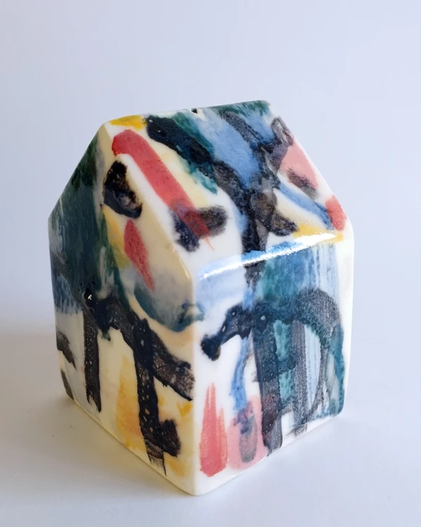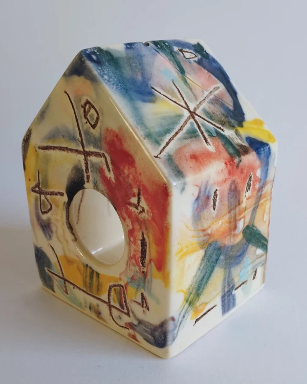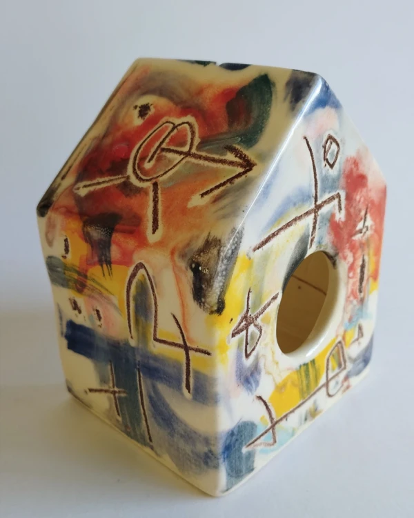 Esta es una serie de casitas pintadas y esgrafiadas sobre esmaltes ceramicos hechas por el diseñador grafico Javier Luengo Bustamante que forma parte de una coleccion de casas de distintos tamaños que conviven en perfecta armonia.