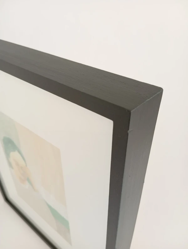 Mide 30 x 35 y esta lista para colgar. Podes consultar por otro tipo de marco, en ese caso el tiempo de produccion estimado es de 15 dias.
