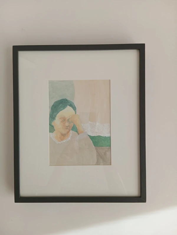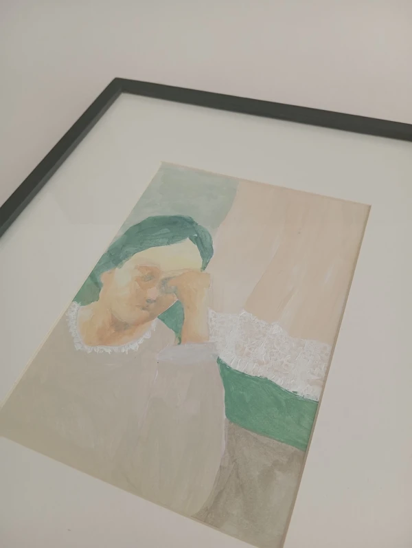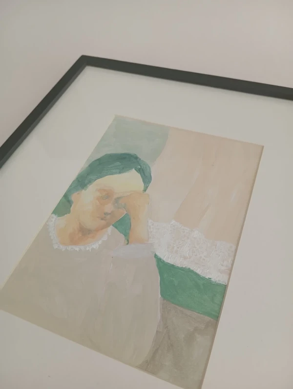 Obra original de Toia Salvay acrilico sobre papel, la pieza esta enmarcada con varilla box gris y passepartout natural.
