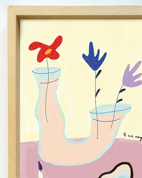 Pintura digital de Te con Margaritas en papel texturado 180 grs
