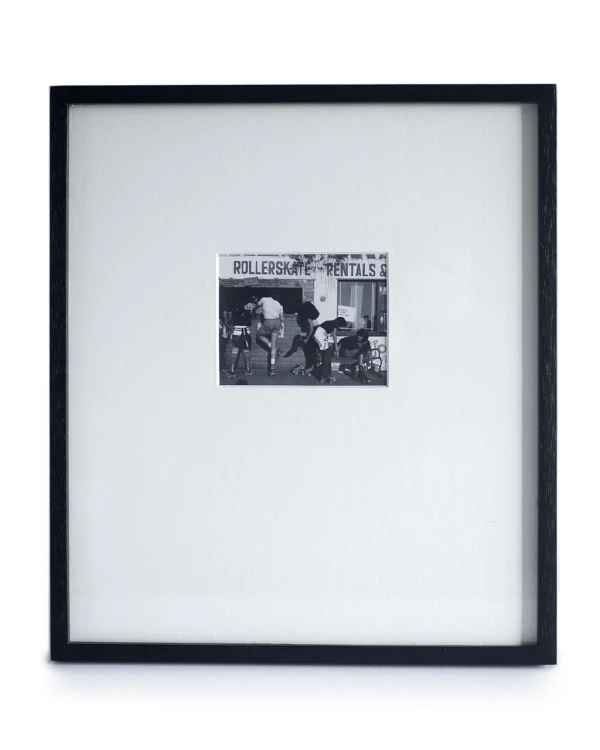 Fotografia en blanco y negro enmarcada con passepartout tiza y marco finito negro