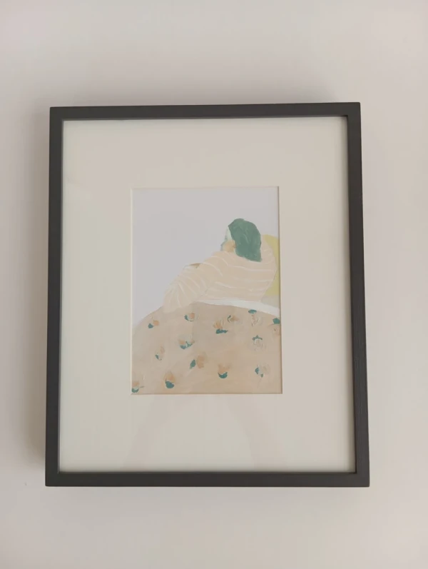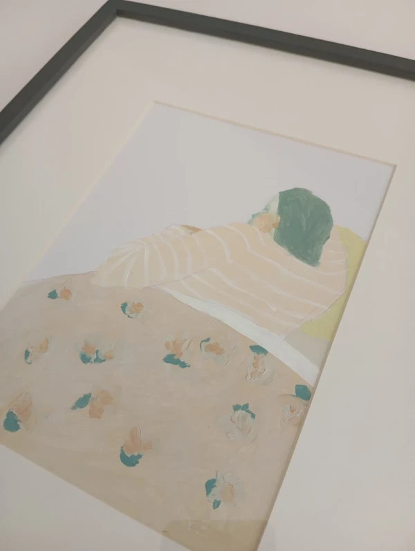 Obra original de Toia Salvay acrilico sobre papel, esta enmarcada en box gris con passepartout natural.