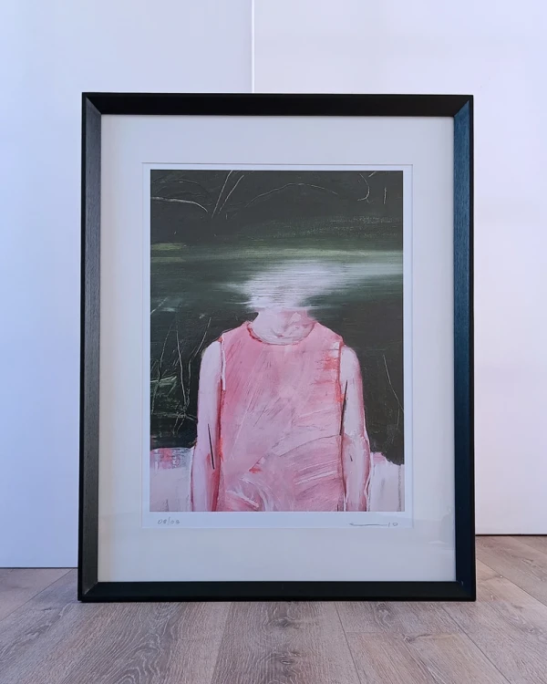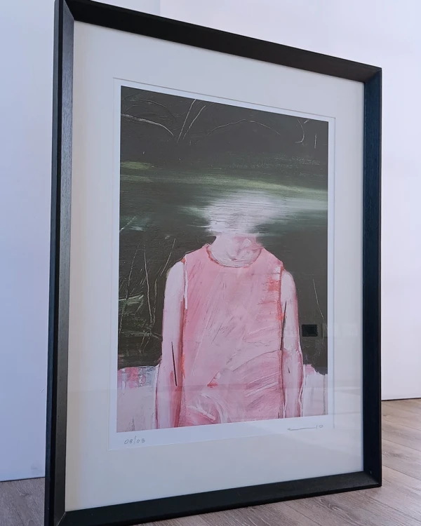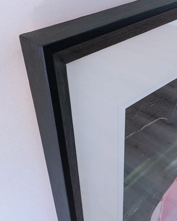 Obra digital de Elo Menendez impresa en papel ilustracion enmarcada con amplio passepartout y marco en traingulo negro