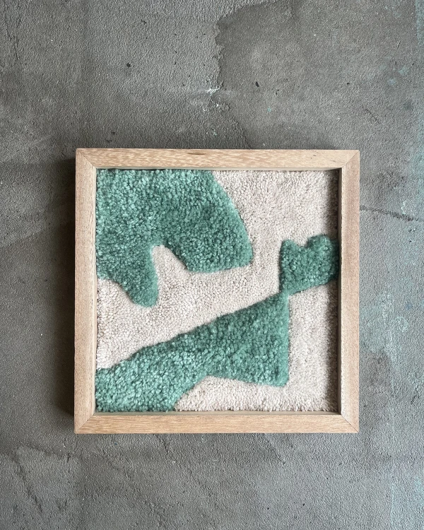Cuadro tejido a mano mediante la tecnica de tuftingn