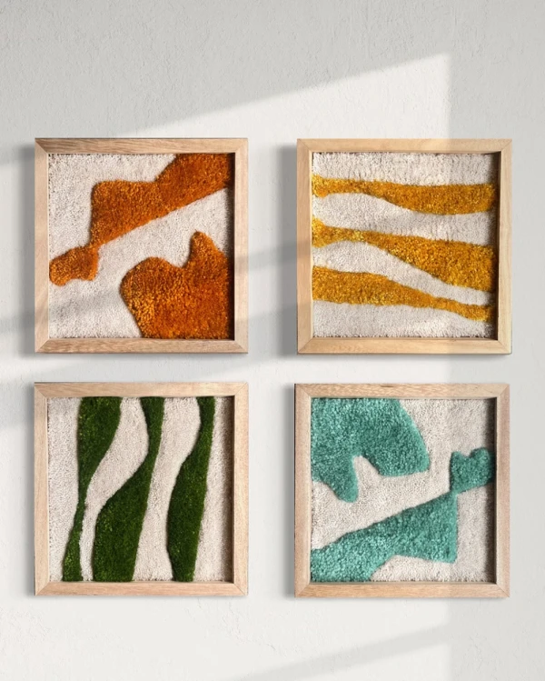 Cuadro tejido a mano mediante la tecnica de tuftingn
