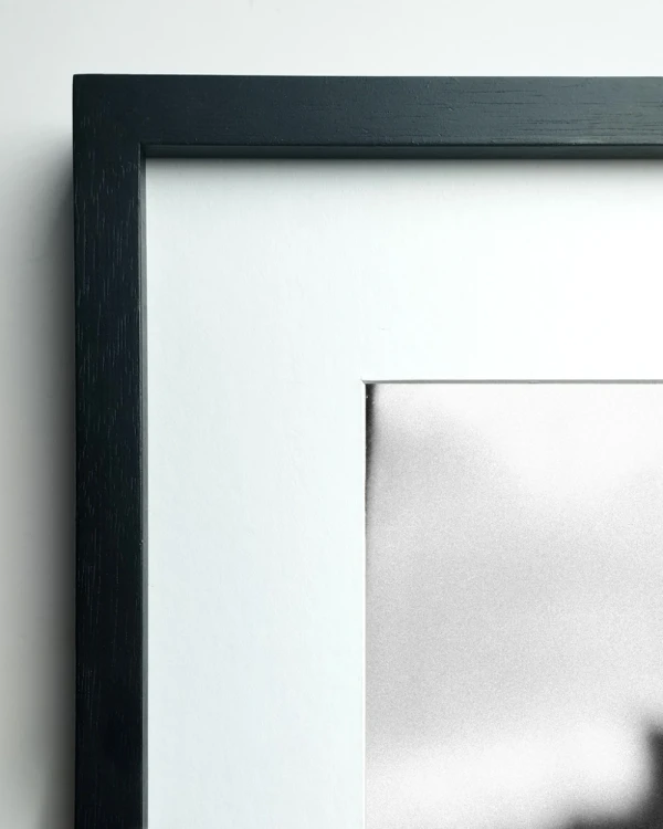 La foto esta enmarcada con marco en L recto mas 10 cm de passepartout por lado, podes elegir 3 medidas diferentes de impresion.