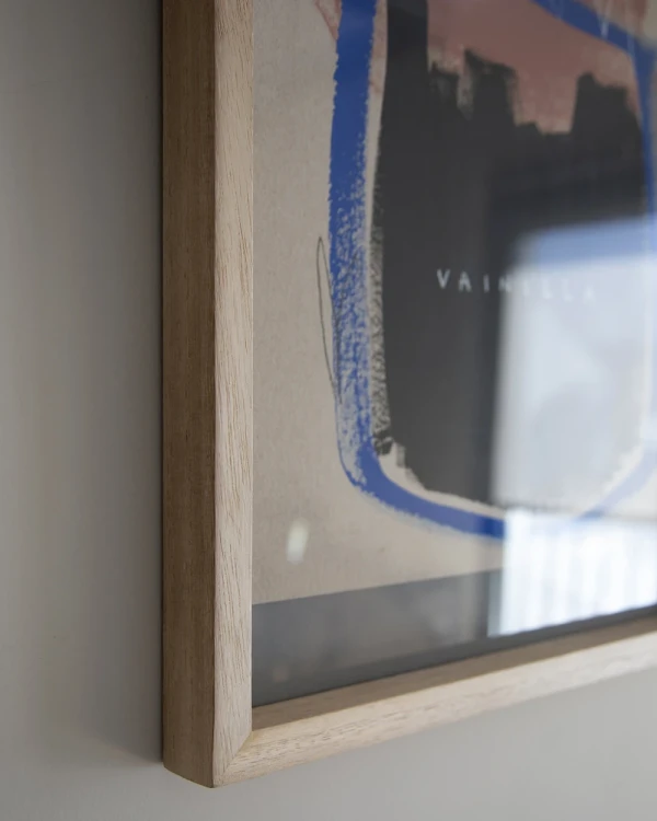 Original de Gaby Perez enmarcado con fondo a tono y varilla tipo box en madera natural