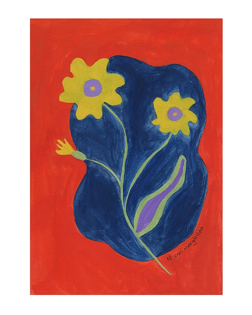 Pintura digital de Te con Margaritas en papel "constelacion".