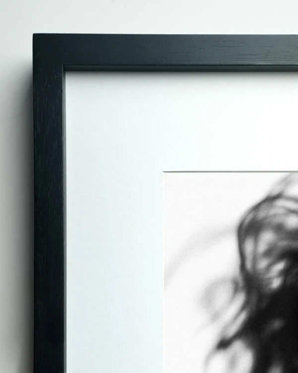 La foto esta enmarcada con marco en L recto mas 10 cm de passepartout por lado, podes elegir 3 medidas diferentes de impresion.